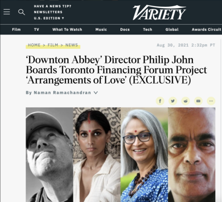 BAFTA-winning Welsh director Philip John, whose credits include “Downton Abbey” and “The Good Karma Hospital,” will direct “Arrangements of Love,” the sole Asian project selected at the Toronto International Financing Forum, which sits alongside the Toronto film festival.